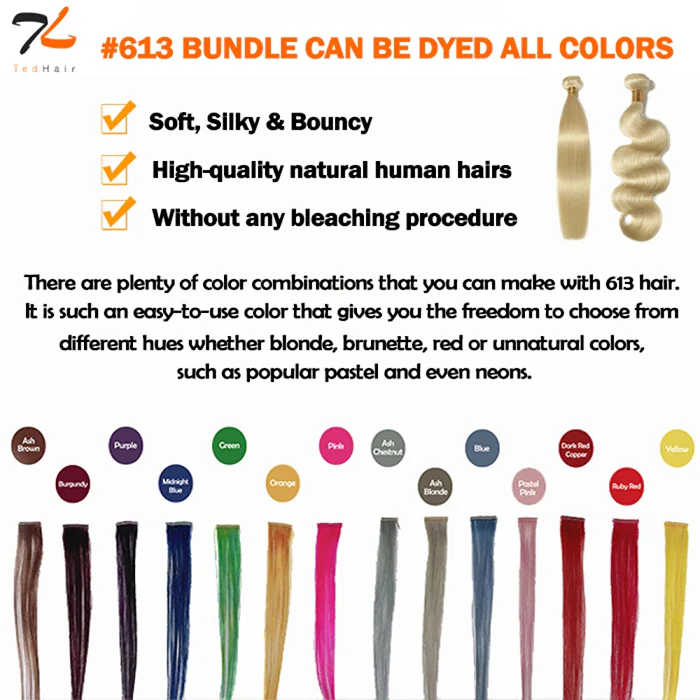 10-30 Inch #613 Lightest Blonde Straight Colored Remy Hair